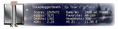 | Kills | 3171 | Deaths | 1382 | Kill / Death | 2.29 |