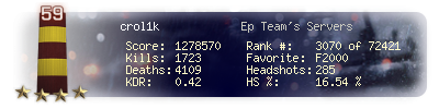 | Headshots | 331 | Suicides | 214 | Headshot / Kill | 17.05 % |