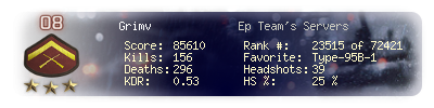 | Kills | 156 | Deaths | 296 | Kill / Death | 0.53 |