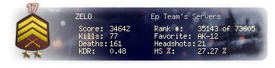 | Kill-streak | 4 | Death-streak | 13 | Team Kills | 0 |