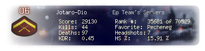 | Kills | 44 | Deaths | 97 | Kill / Death | 0.45 |