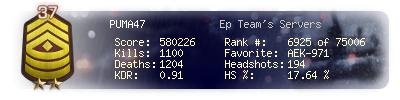 | Kills | 1100 | Deaths | 1204 | Kill / Death | 0.91 |