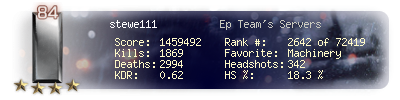 | Kills | 1869 | Deaths | 2994 | Kill / Death | 0.62 |
