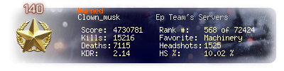 | Kills | 18438 | Deaths | 8367 | Kill / Death | 2.2 |