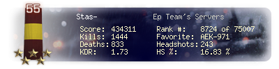 | Kills | 1444 | Deaths | 833 | Kill / Death | 1.73 |