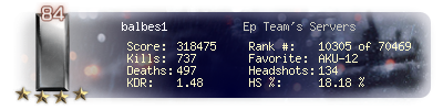 | Kill-streak | 14 | Death-streak | 10 | Team Kills | 1 |
