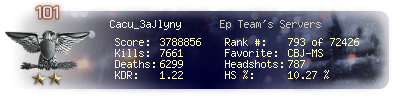 | Kills | 10302 | Deaths | 7675 | Kill / Death | 1.34 |