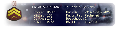 | Headshots | 17 | Suicides | 0 | Headshot / Kill | 13.08 % |