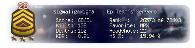 | Headshots | 22 | Suicides | 2 | Headshot / Kill | 15.94 % |