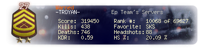 | Kills | 443 | Deaths | 750 | Kill / Death | 0.59 |