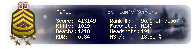 | Kill-streak | 9 | Death-streak | 20 | Team Kills | 0 |