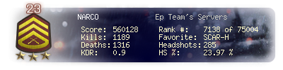 | Headshots | 285 | Suicides | 7 | Headshot / Kill | 23.97 % |
