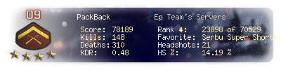 | Kill-streak | 6 | Death-streak | 14 | Team Kills | 0 |