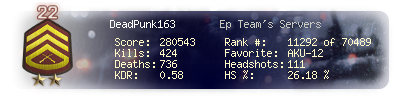 | Kills | 424 | Deaths | 736 | Kill / Death | 0.58 |