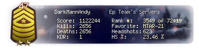 | Headshots | 721 | Suicides | 18 | Headshot / Kill | 23.37 % |