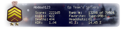 | Kill-streak | 15 | Death-streak | 9 | Team Kills | 0 |