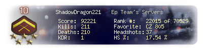| Headshots | 32 | Suicides | 0 | Headshot / Kill | 20.13 % |