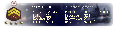 | Kill-streak | 7 | Death-streak | 11 | Team Kills | 0 |