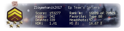 | Kill-streak | 5 | Death-streak | 9 | Team Kills | 0 |