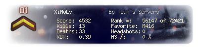 | Kills | 13 | Deaths | 33 | Kill / Death | 0.39 |