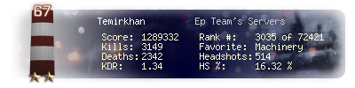 | Headshots | 514 | Suicides | 43 | Headshot / Kill | 16.32 % |