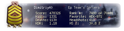 | Headshots | 415 | Suicides | 10 | Headshot / Kill | 30.72 % |