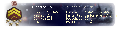 | Headshots | 69 | Suicides | 4 | Headshot / Kill | 15.65 % |