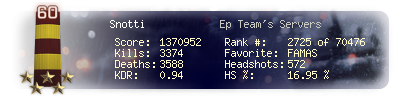 | Headshots | 898 | Suicides | 33 | Headshot / Kill | 17.18 % |