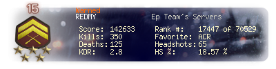 | Kills | 350 | Deaths | 125 | Kill / Death | 2.8 |