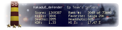 | Kills | 3806 | Deaths | 2855 | Kill / Death | 1.33 |