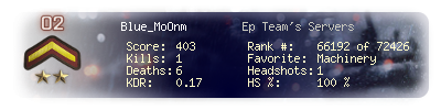 | Kill-streak | 1 | Death-streak | 5 | Team Kills | 0 |