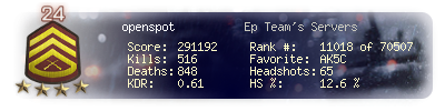 | Kill-streak | 6 | Death-streak | 15 | Team Kills | 1 |