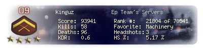 | Headshots | 3 | Suicides | 5 | Headshot / Kill | 5.17 % |