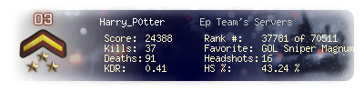 | Headshots | 16 | Suicides | 0 | Headshot / Kill | 43.24 % |