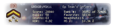 | Headshots | 6 | Suicides | 0 | Headshot / Kill | 10.34 % |