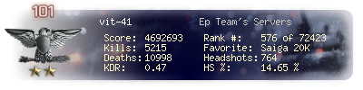 | Kills | 5215 | Deaths | 10998 | Kill / Death | 0.47 |