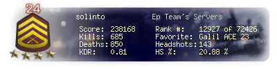 | Kills | 685 | Deaths | 850 | Kill / Death | 0.81 |