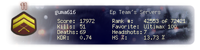| Kill-streak | 3 | Death-streak | 8 | Team Kills | 0 |