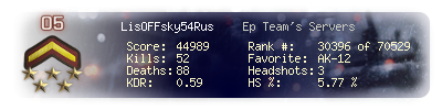 | Kill-streak | 8 | Death-streak | 11 | Team Kills | 0 |