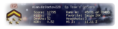 | Kill-streak | 3 | Death-streak | 7 | Team Kills | 0 |
