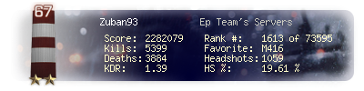 | Kills | 5399 | Deaths | 3884 | Kill / Death | 1.39 |