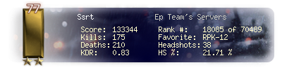 | Kills | 175 | Deaths | 210 | Kill / Death | 0.83 |