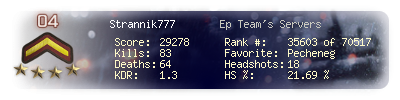 | Headshots | 18 | Suicides | 0 | Headshot / Kill | 21.69 % |