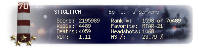| Headshots | 1444 | Suicides | 54 | Headshot / Kill | 24.36 % |
