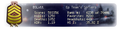 | Headshots | 441 | Suicides | 8 | Headshot / Kill | 33.51 % |