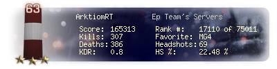| Kills | 307 | Deaths | 386 | Kill / Death | 0.8 |