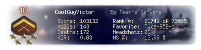 | Kill-streak | 7 | Death-streak | 8 | Team Kills | 0 |