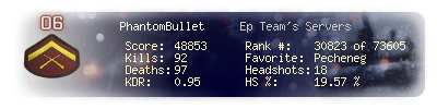 | Headshots | 18 | Suicides | 0 | Headshot / Kill | 19.57 % |