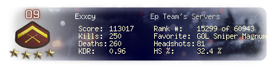 | Kills | 250 | Deaths | 260 | Kill / Death | 0.96 |