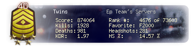 | Headshots | 138 | Suicides | 6 | Headshot / Kill | 10.62 % |